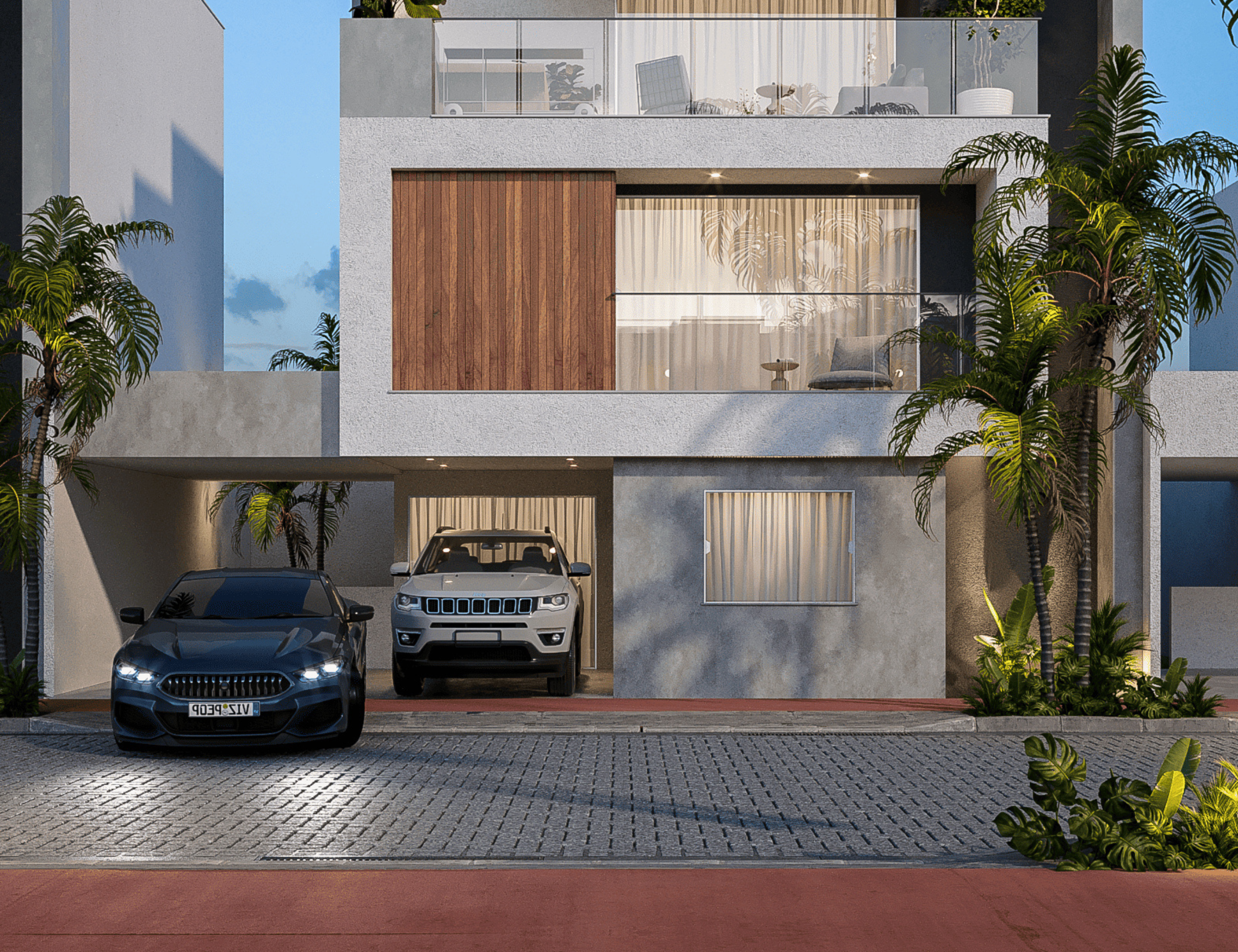 2 vagas por casa, facilitando a rotina de dois carros com mais organização e segurança.